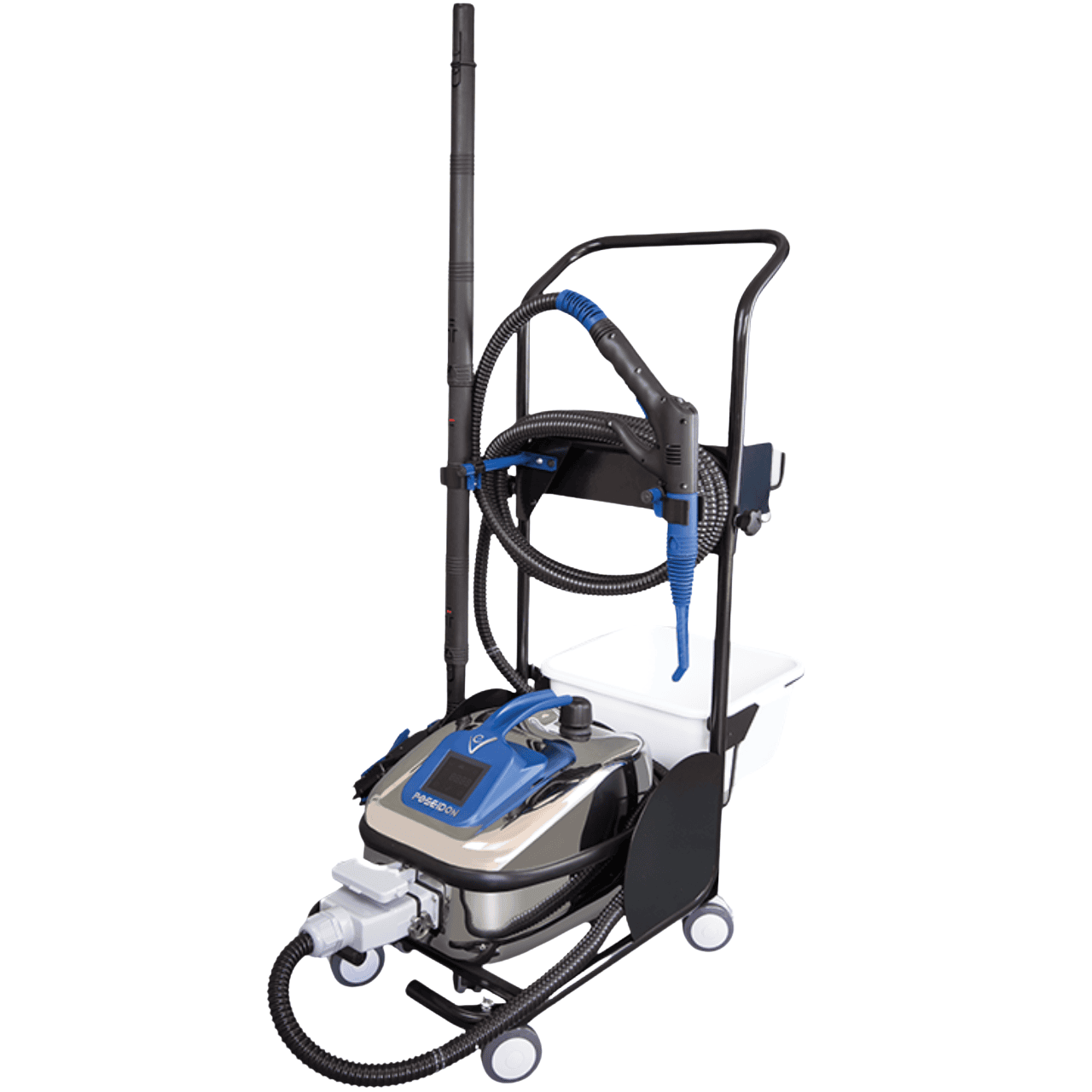 EV Poseidon přichází se speciálně upraveným vozíkem, se kterým je ještě jednodušší pohybovat a uklízet velké prostory. Vozík EV Poseidon je vybaven těmi správnými funkcemi a má místo pro veškeré příslušenství EV.