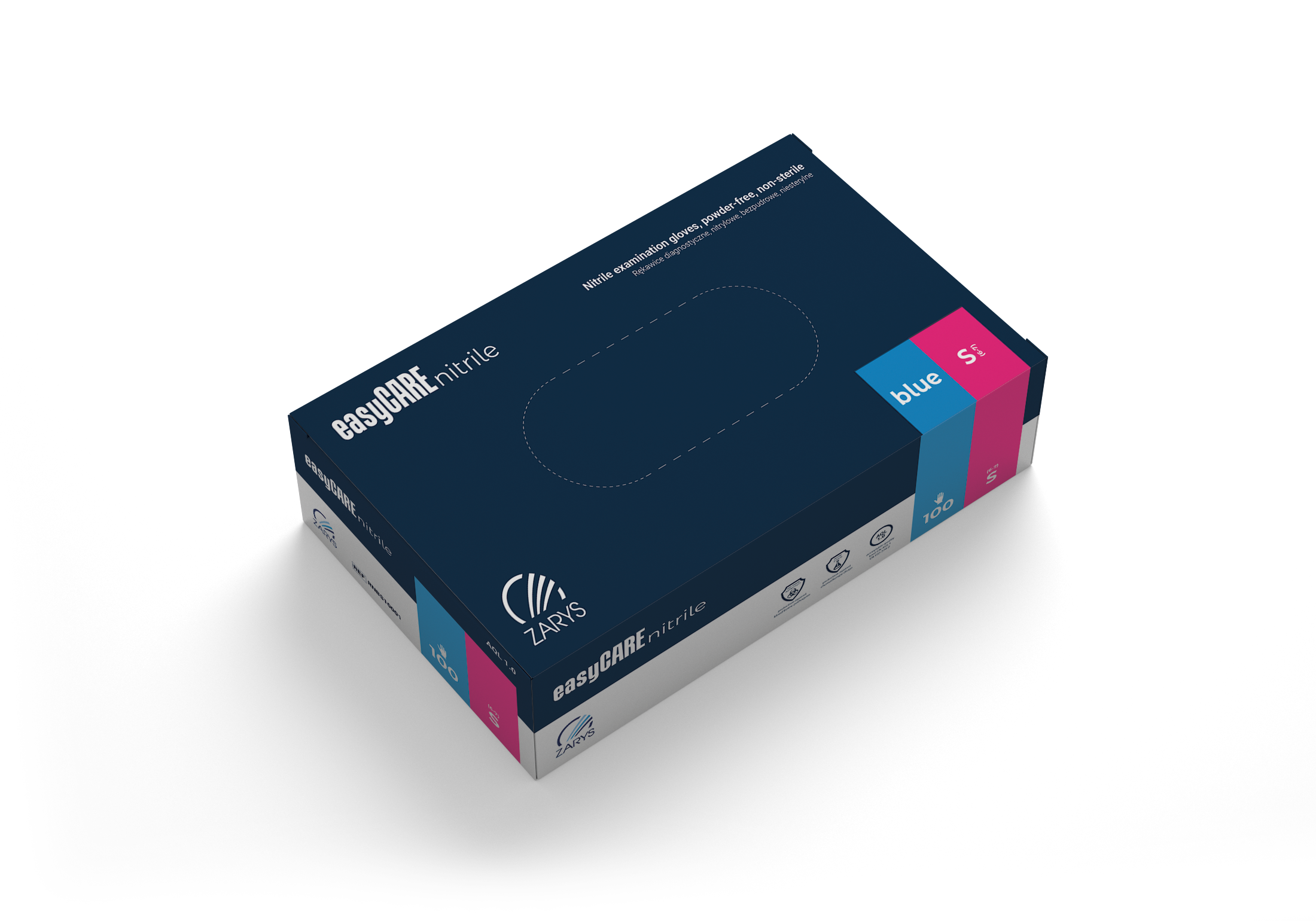 Balení obsahuje 100 ks rukavic velikost S v modré barvě.
